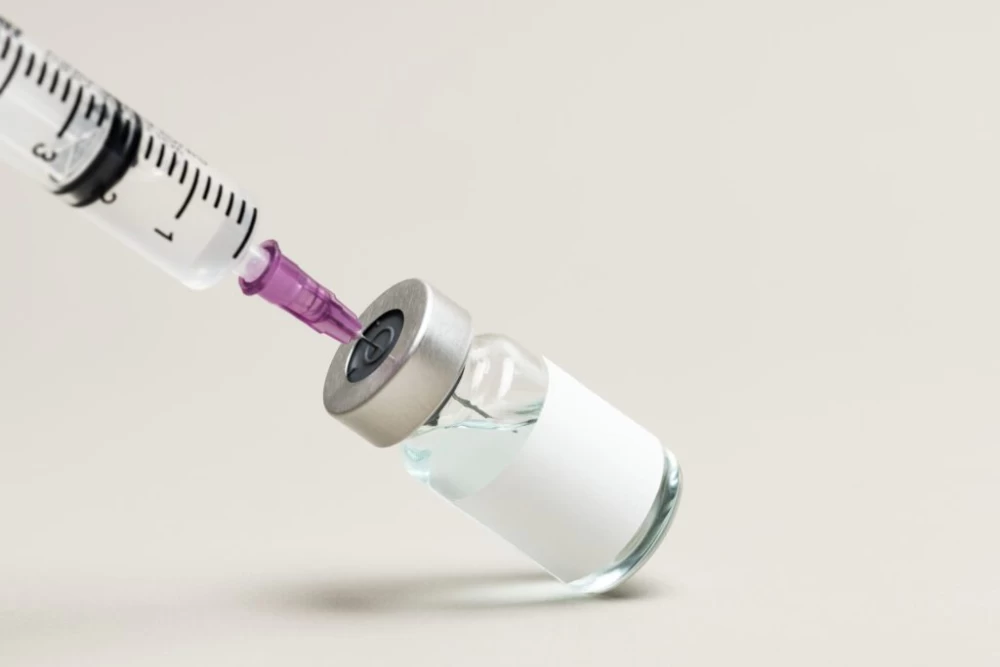 Blank white label on medicine bottle glass vial for injection