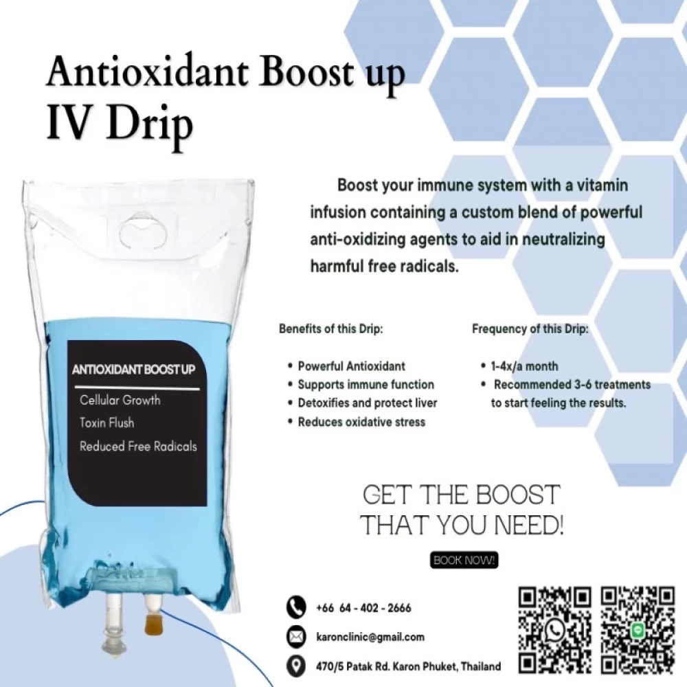 Boost your immune system with a vitamin infusion containing a custom blend of powerful anti-oxidizing agents to aid in neutralizing harmful free radicals.